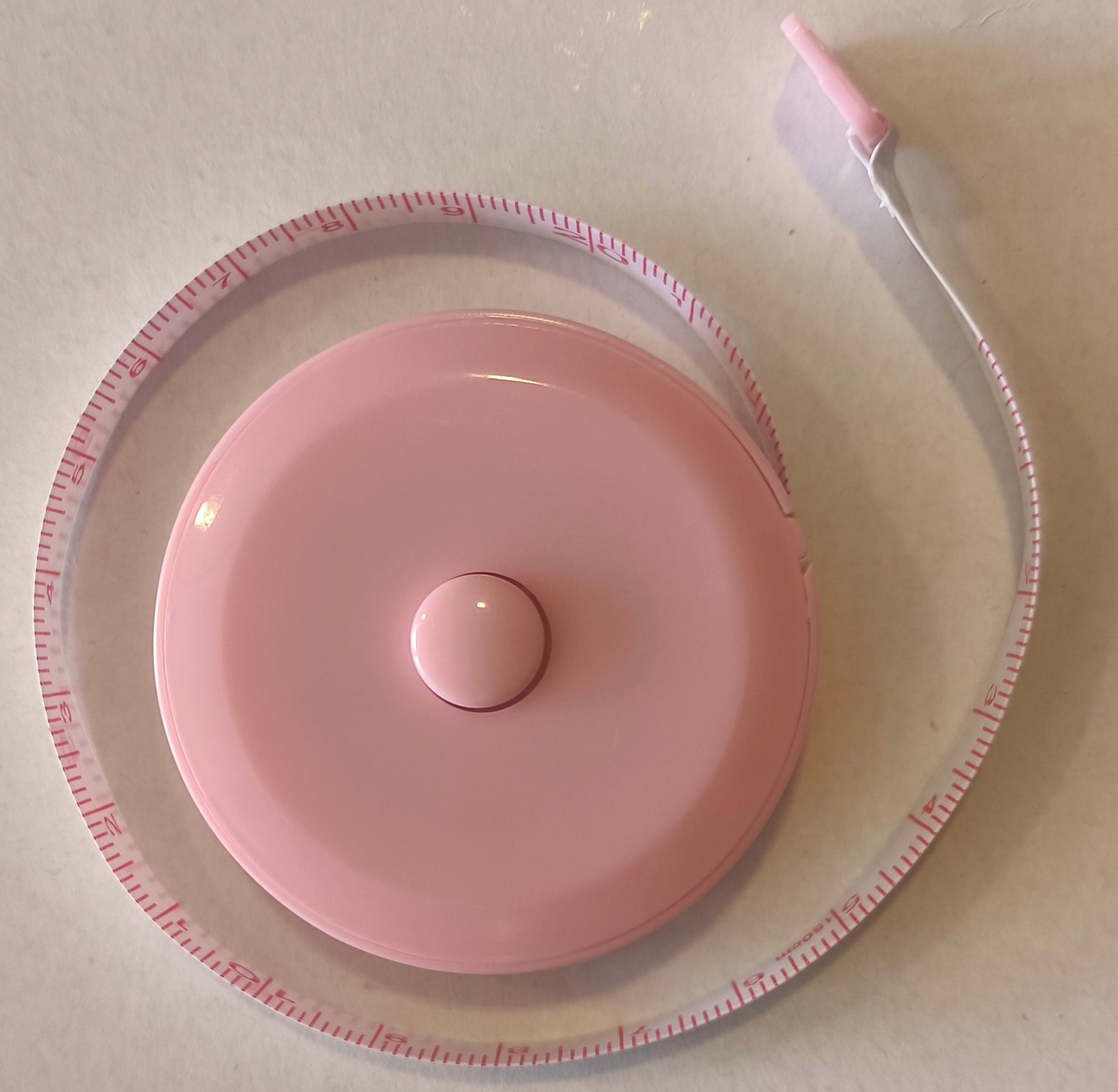 Cinta metrica retractil, rosa y azul.